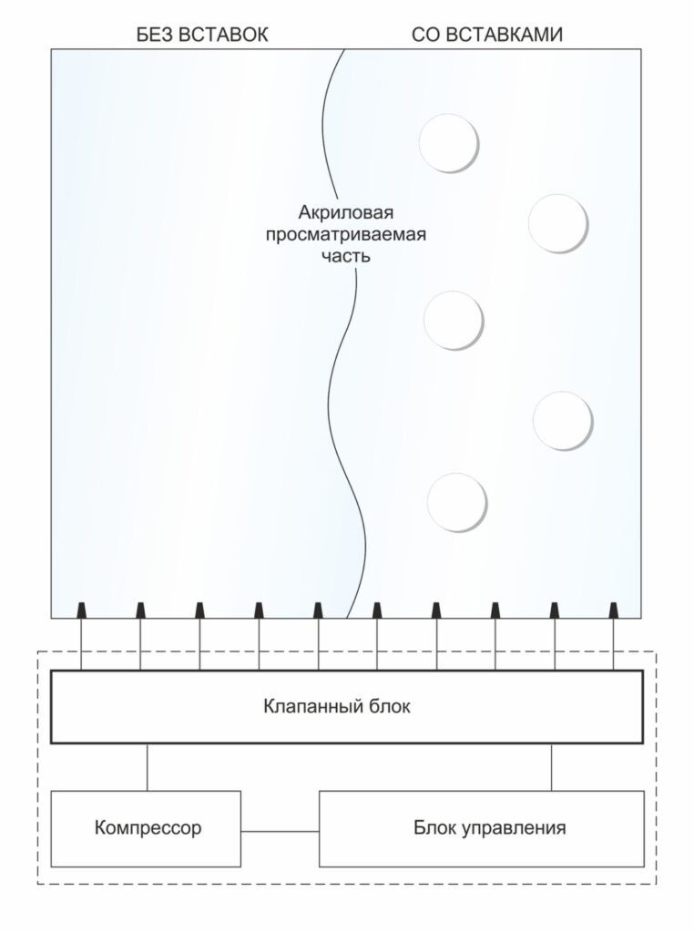 Акриловые вставки задают направление движения пузырьков.